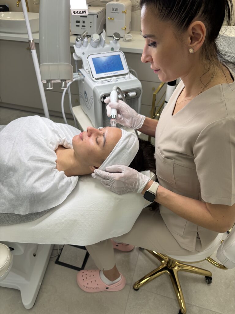 Oczyszczanie wodorowe przeprowadza się na czystej cerze bez makijażu, po wcześniejszej tonizacji.
